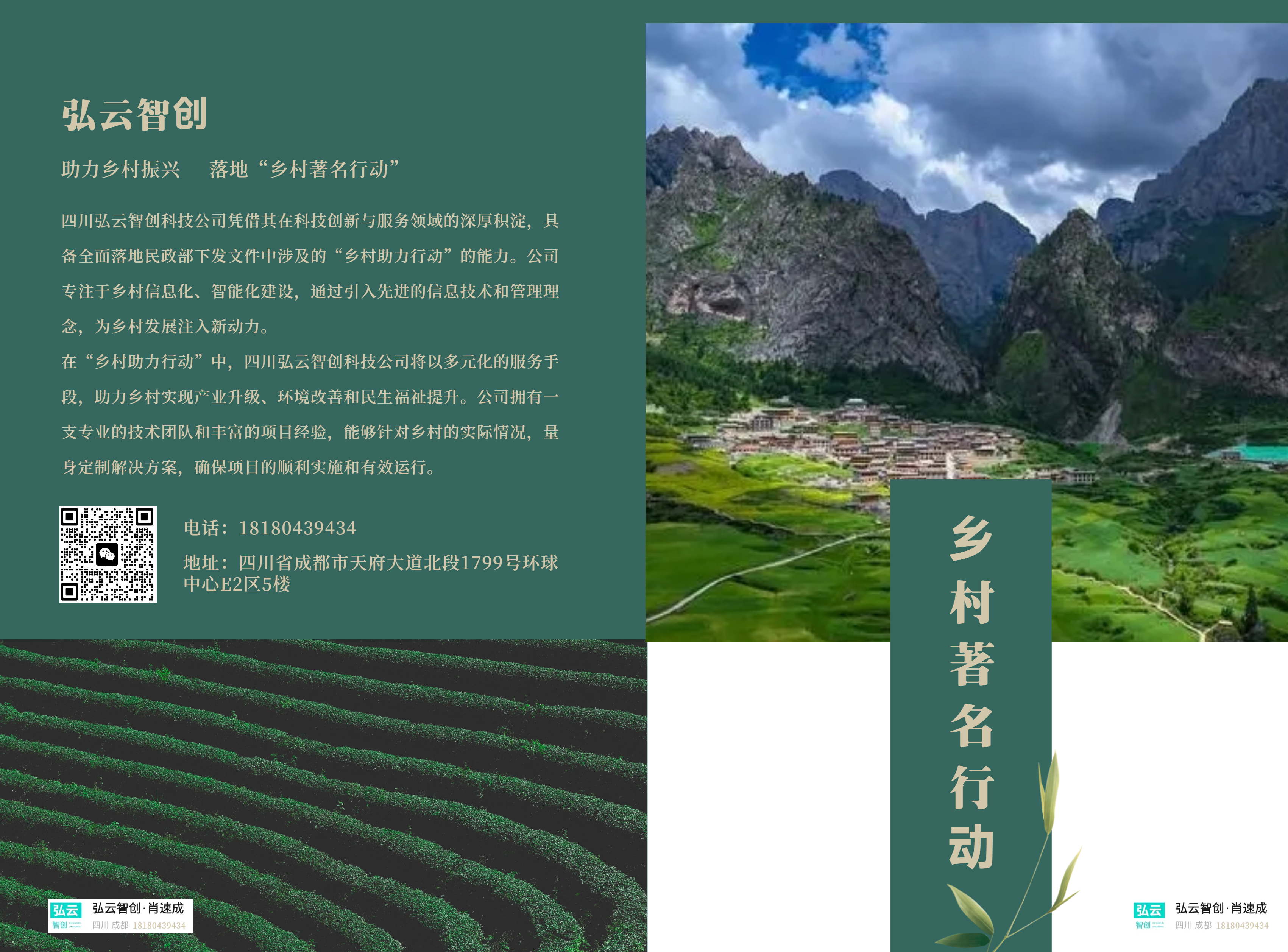 四川弘云智创科技公司凭借其在科技创新与服务领域的深厚积淀, 具备全面落地民政部下发文件中涉及的“ 乡村助力行动” 的能力。公司专注于乡村信息化、智能化建设, 通过引入先进的信息技术和管理理念, 为乡村发展注入新动力。在“ 乡村助力行动” 中, 四川弘云智创科技公司将以多元化的服务手段, 助力乡村实现产业升级、环境改善和民生福祉提升。公司拥有一支专业的技术团队和丰富的项目经验, 能够针对乡村的实际情况, 量身定制解决方案, 确保项目的顺利实施和有效运行。