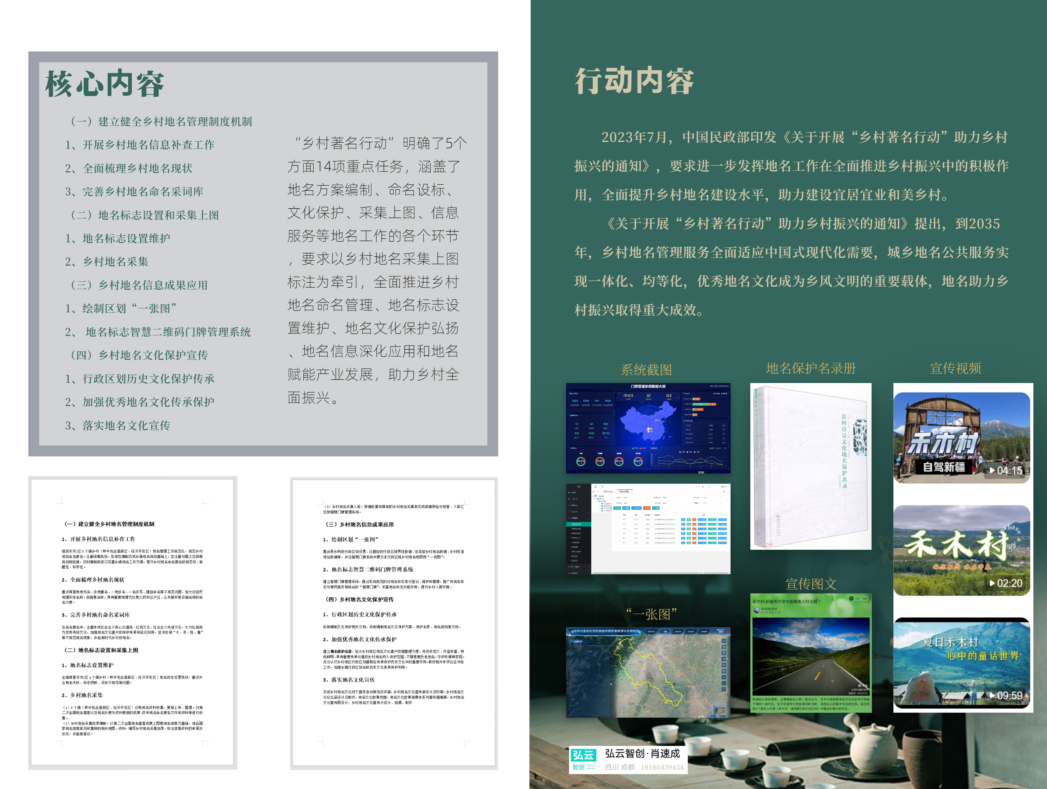 助力乡村振兴 落地“乡村著名行动”通过实施“乡村著名行动”,全面完成科学、系统的地名方案编制;标准地名使用管理进一步规范,地名标志设置覆盖率进一步提高;地名网络进一步织密,乡村地名信息上图标注更加精准,地名信息共享更加便捷;地名文化保护体系进一步完善,建立县级地名保护名录;乡村地名应用进一步拓展,地名公共服务供给明显改善,助力乡村振兴能力明显增强。